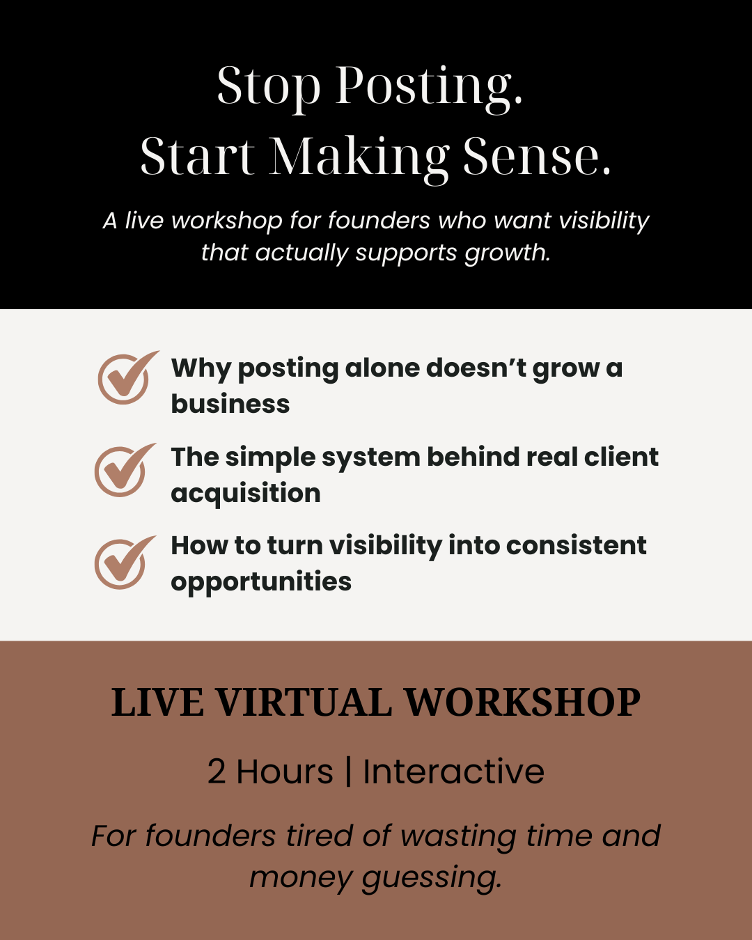 A live 2-hour workshop for business owners who are tired of wasting time and money.